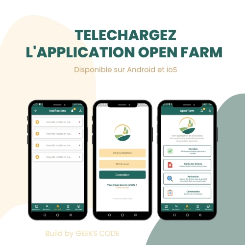 Trouver les fermes les plus proches. L'agriculteur peux ajouter ses fermes avec des produits.
